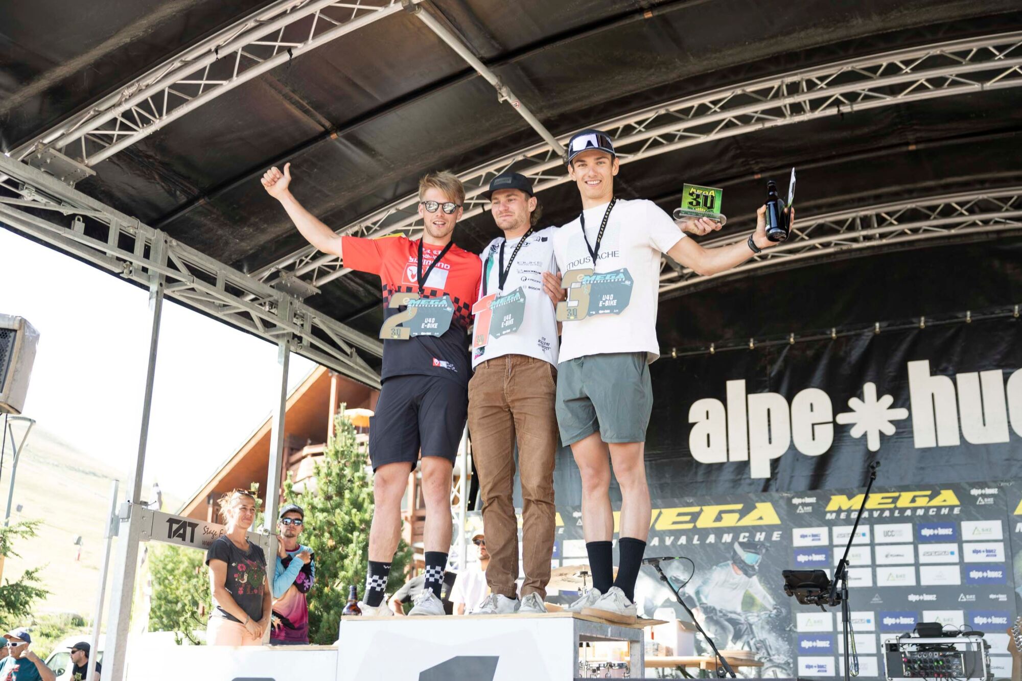 Behind him, Rémy Absalon, team manager and seasoned rider, puts on a textbook race: coming off the glacier in 5th, he overtakes his rivals one by one and grabs 2nd place, just behind Hugo. A 100% Moustache SR Suntour double!