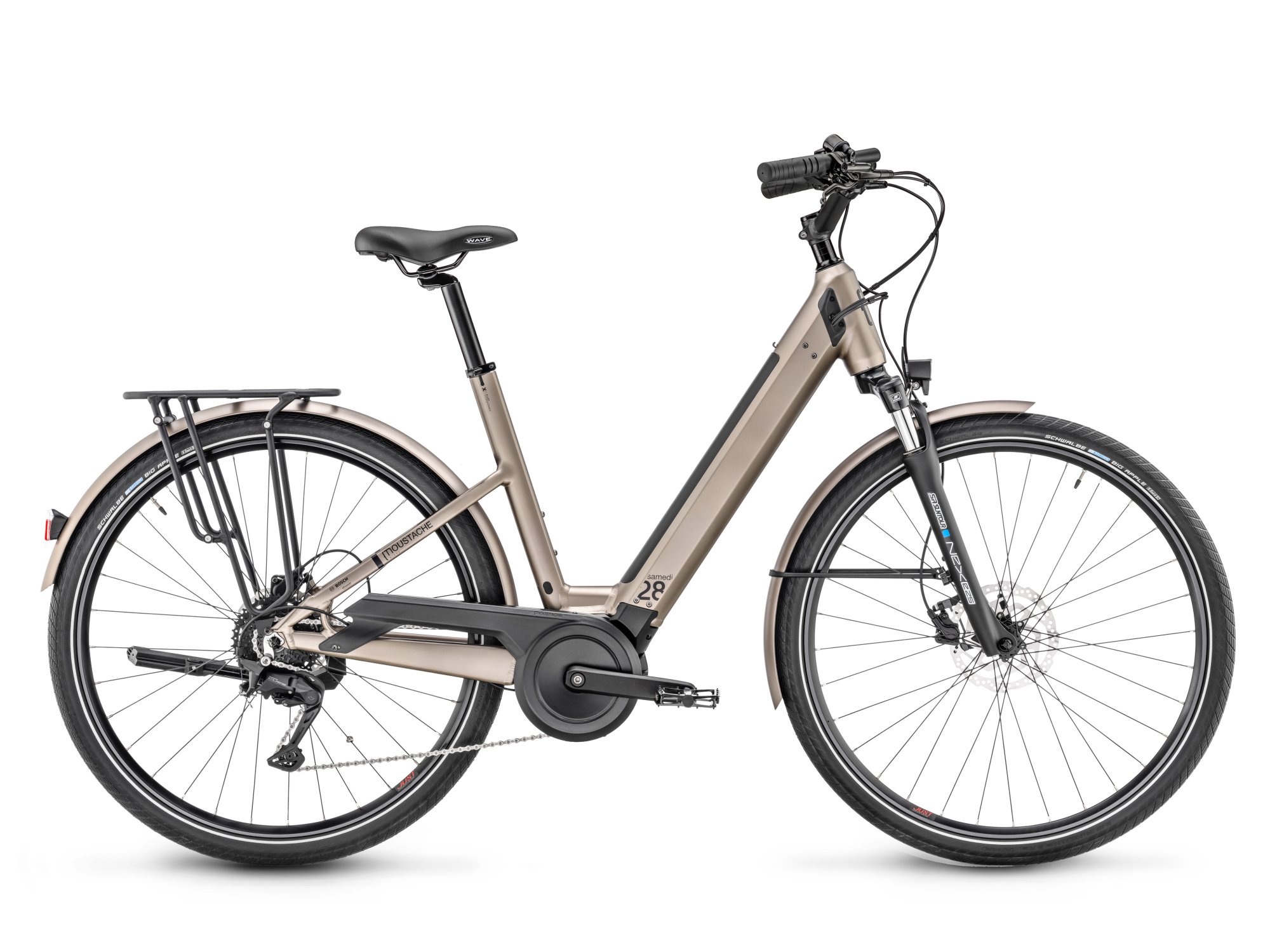Samedi 28, 6061 T4-T6 alloy, variable thickness hydroformed tubes, Bosch PowerTube battery integration (Vertical), integrated cable routing